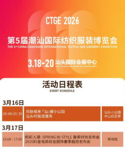 第5届潮汕服博会即将于2026年3月18日至20日在汕头国际会展中心盛大启幕,展览规模与行业影响力将再攀新高!展览面积达15万平方米,设立18大展馆、19大展区,汇聚超1,200家参展企业、20万款新品,全国21大纺织服装产业集群齐聚一堂,为全球贴身服饰行业献上一场开年盛宴。