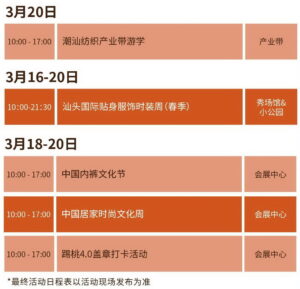 最全展会活动日程表公布,长按收藏!3月18-20日,行业前沿、无限商机,我们汕头国际会展中心见!